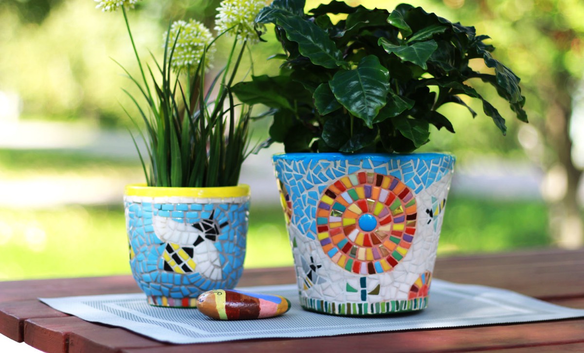 Прежде чем приклеить декоративные элементы, убедитесь, что поверхность цветочного горшка чистая и сухая. Используйте клей, который придает прочность и долговечность, такой как клей для керамики или мозаичный клей. Разместите декоративные элементы на горшке так, чтобы создать гармоничный образ или интересный узор.![]()