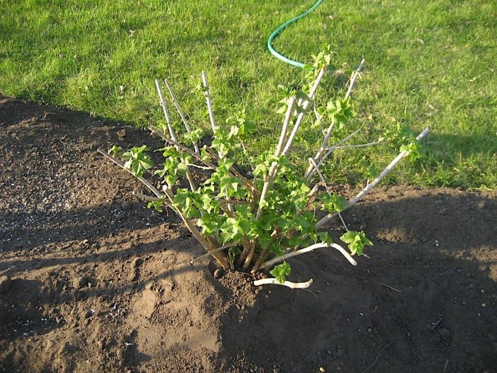 Посадите смородину в яму, оставляя корневую шейку на уровне поверхности почвы. Затем заполните яму землей, уплотните почву вокруг растения и обильно полейте его водой.